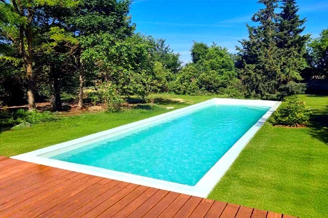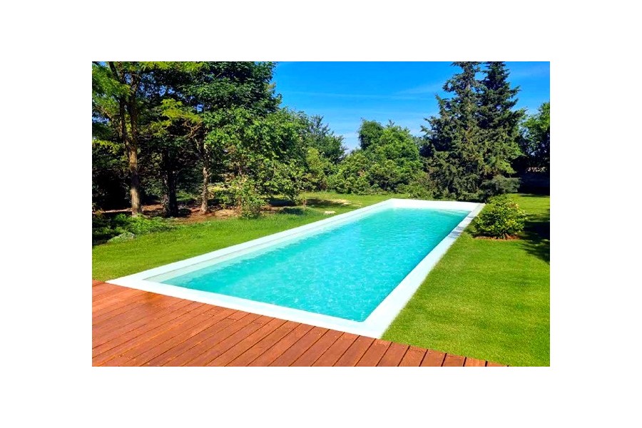 Piscine couloir de nage également disponible en 8.50 x 3.60 m ou 8.00 x 3,60m. Peut recevoir en option un kit de nage à contre-courant.