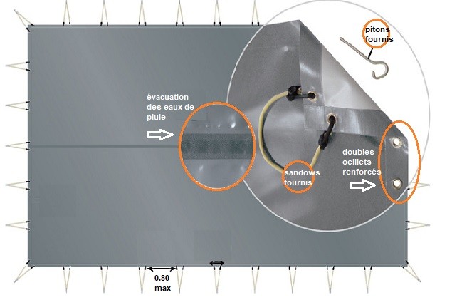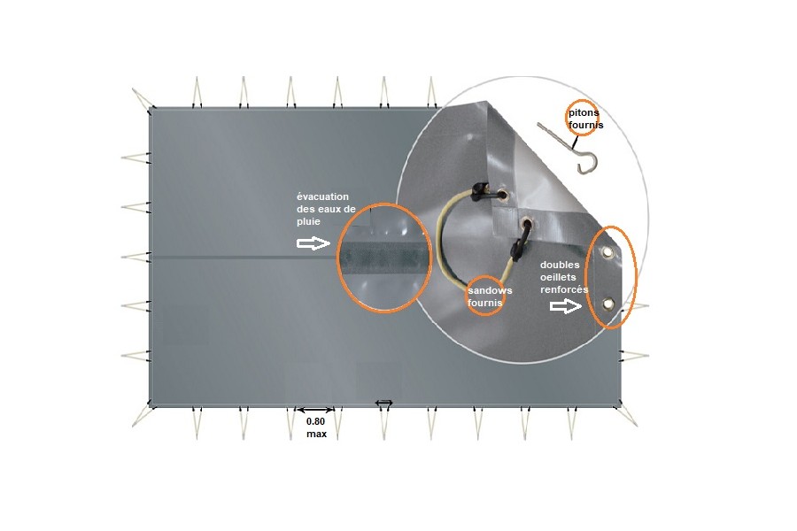 La couverture de sécurité " spécial hiver " est testée et certifiée par le Laboratoire National d'Essais. L'absence des barres de renforts est compensé par un système de fixations latérales. Ce procécé répond totalement aux normes CE/NF 90-308 tout en offrant un tarif plus doux.