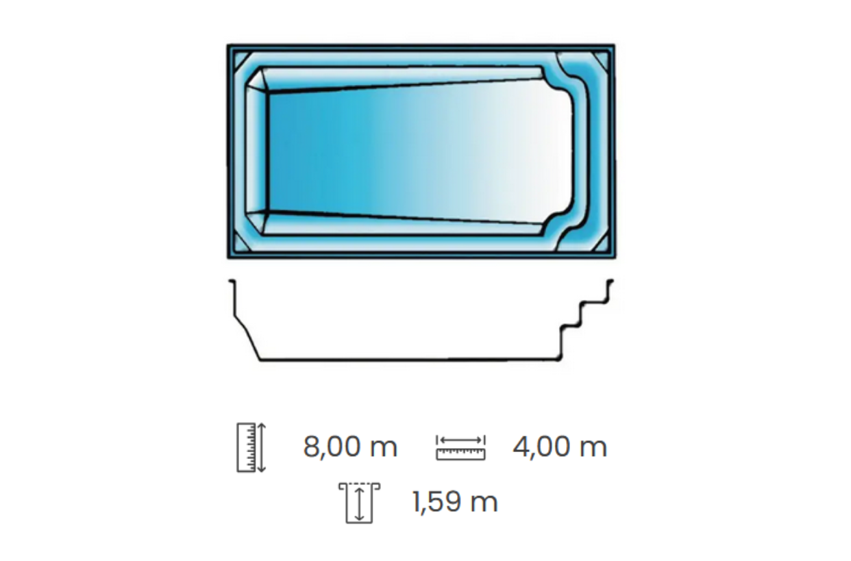 Catégorie: Piscine rectangulaire, piscine avec escalier, piscine coque polyester, piscines en kit, piscines à fond plat, coque de piscine polyester, kit piscine, piscine 8x4