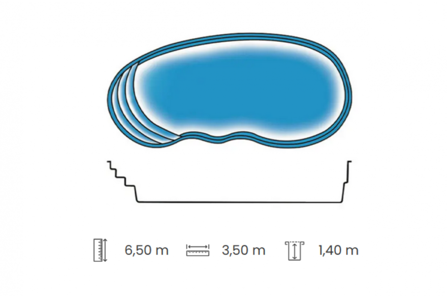 Corse 2. est l’un des plus beaux dessin de piscine de ces dernières années : alors que le style de piscine "en amande " appelé aussi haricot, se démocratisait, un styliste eut l’idée de casser les douceurs des lignes, en ajoutant un décochement audacieux en plein milieu. Un kit piscine coque polyester avec un fond progressif, pour petits et grands ! Installation possible d'un kit de nage à contre-courant en option.