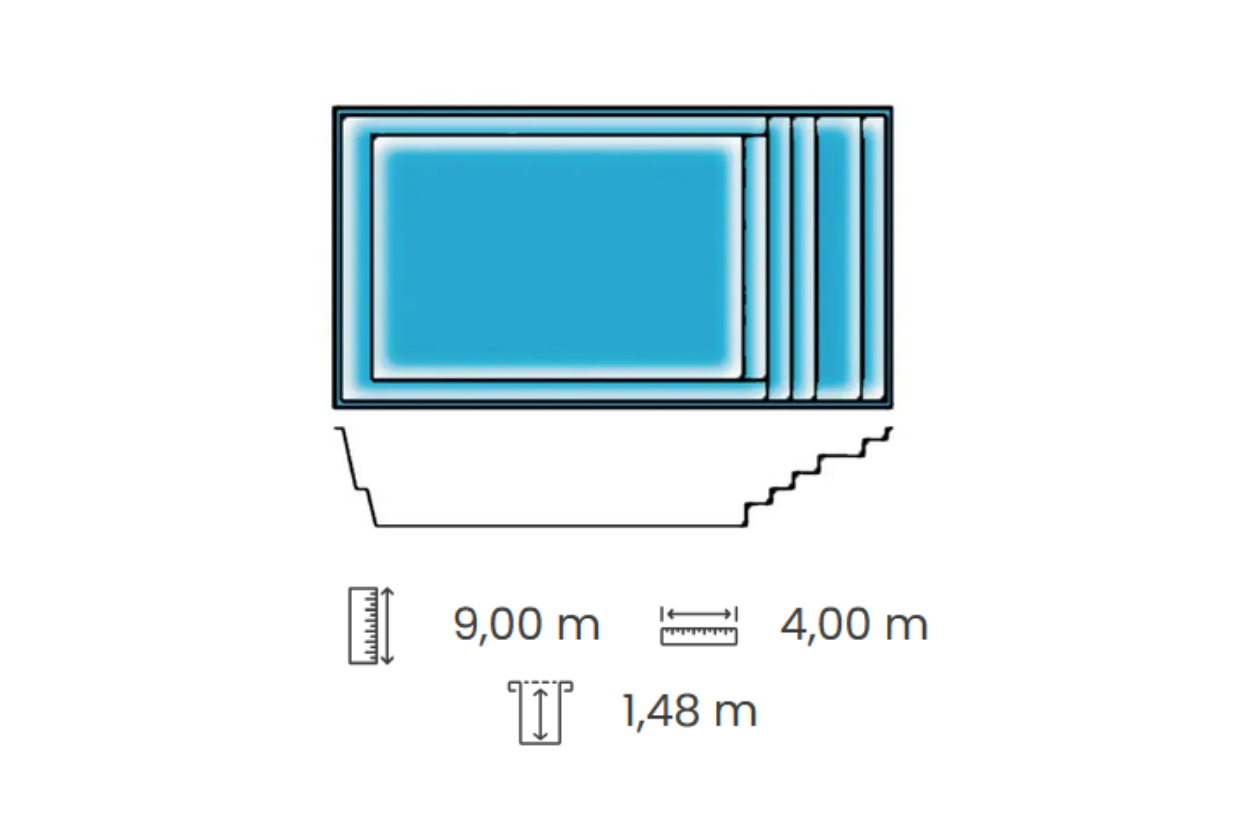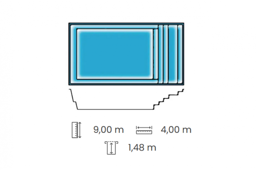 Catégorie: Piscine rectangulaire, piscine avec escalier, piscine coque polyester, piscines en kit, piscines à fond plat, coque de piscine polyester, kit piscine, piscine 8x4.