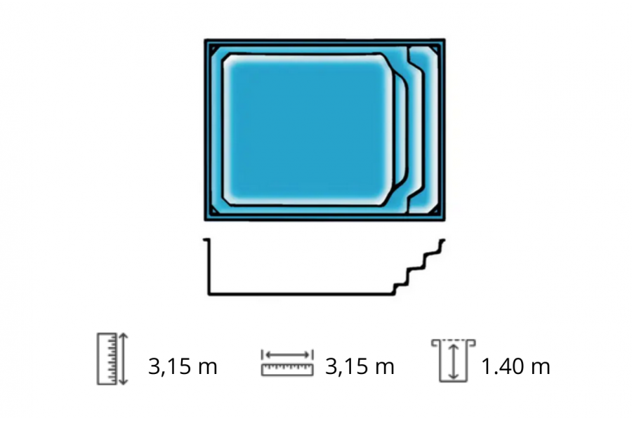 Votre mini-piscine carrée Guernesey sans permis de construire 3,15 x 3,15 m =9,9 m2
