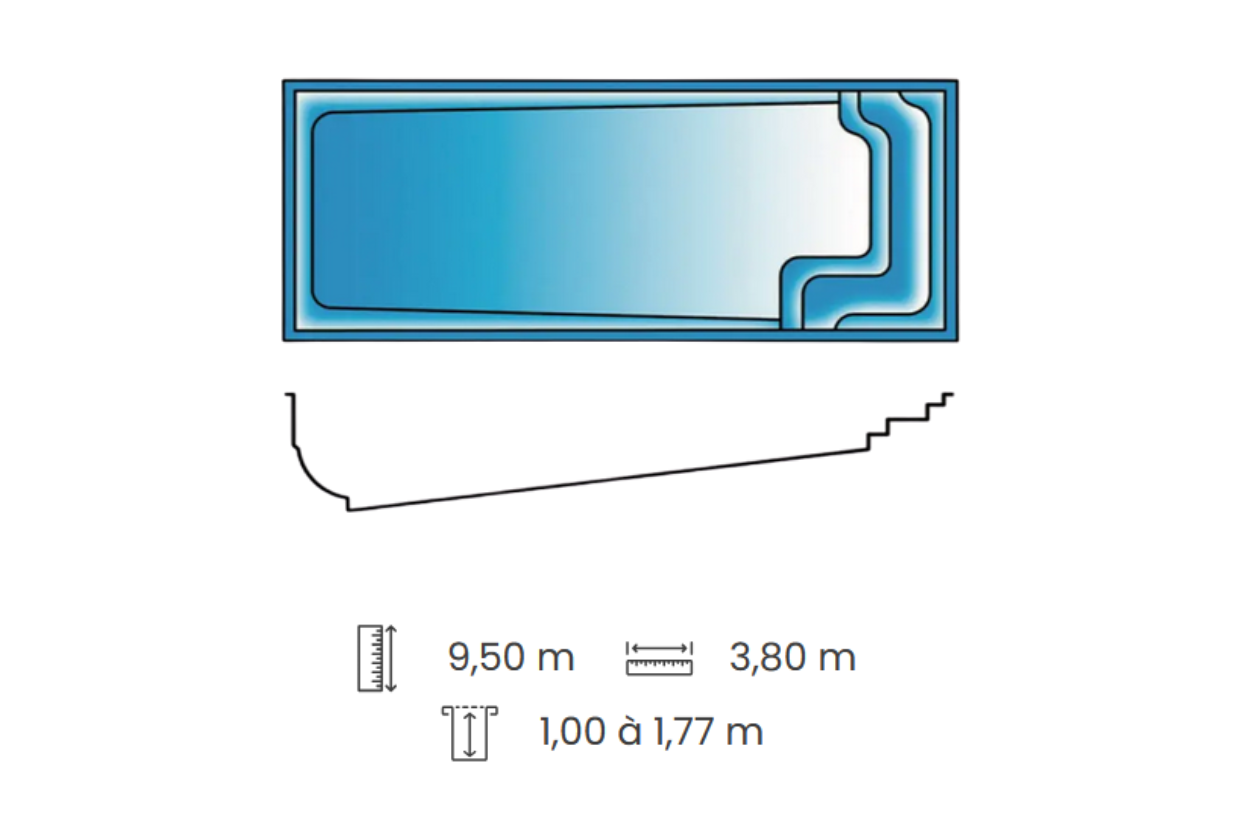 La structure de nos piscines coques polyester est renforcée à l'extérieur au moyen de renforts verticaux et horizontaux de type Omega et/ou Equerre , répartis suivant les formes et les contraintes de nos modèles.